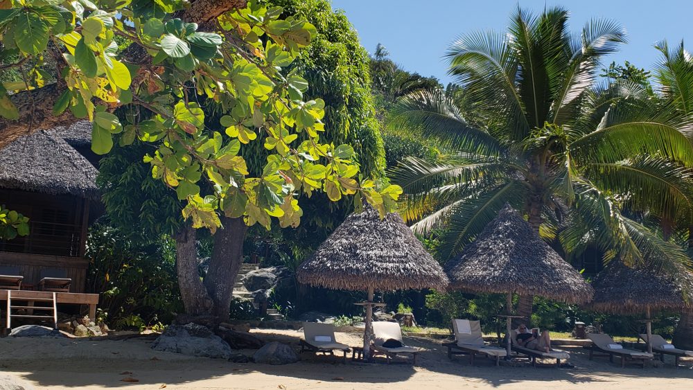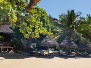 We were most graciously greeted on the beach by Maryse Zohar, the resort manager. Tsara Komba Lodge is truly an Eden with beaches as beautiful as those at Anakao. The property is made up of eight individual palapa-style cottages situated on a steep tropical hillside with large terraces overlooking the sea. The cottages are connected to the main lodge by a series of stairs and stone walkways. I found the stairs and stone walkways a bit challenging especially at night.