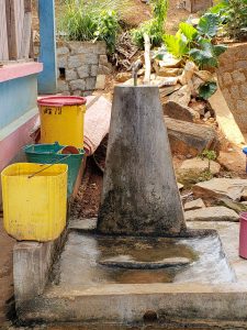 DVDH has also helped the villagers build a central latrine and a central water faucet. Prior to the central latrine folks just used the ocean and the beach. It is fady or forbidden to have a latrine inside a house. The central water faucet enables folks to get water nearby rather than having to climb up into the hills to reach the spring.