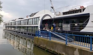 Later in the afternoon, we boarded our bus again for a ride to the port of Cernavoda to finally board our cruise ship on the Danube and to meet the rest of our fellow travelers who hadn’t opted for the preliminary days in Romania. The ship, Avalon Artistry II, can accommodate well over 100 passengers. There were 26 passengers on this voyage and more than 40 crew members.