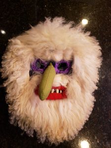 This type of mask made from sheep skin, white beans for teeth and scraps of various fabrics is used in old pagan rituals that are still practiced in Romania between Christmas and New Year’s Eve. Young men put on masks of this type and engage in purifying rituals designed to drive evil spirits away. The masks have to be uglier than the Ugly One, i.e., the devil or evil spirit.